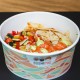 riso bianco, salmone, avocado, mango, cipolla fritta, alga wakame, teriyaki, semi di sesamo